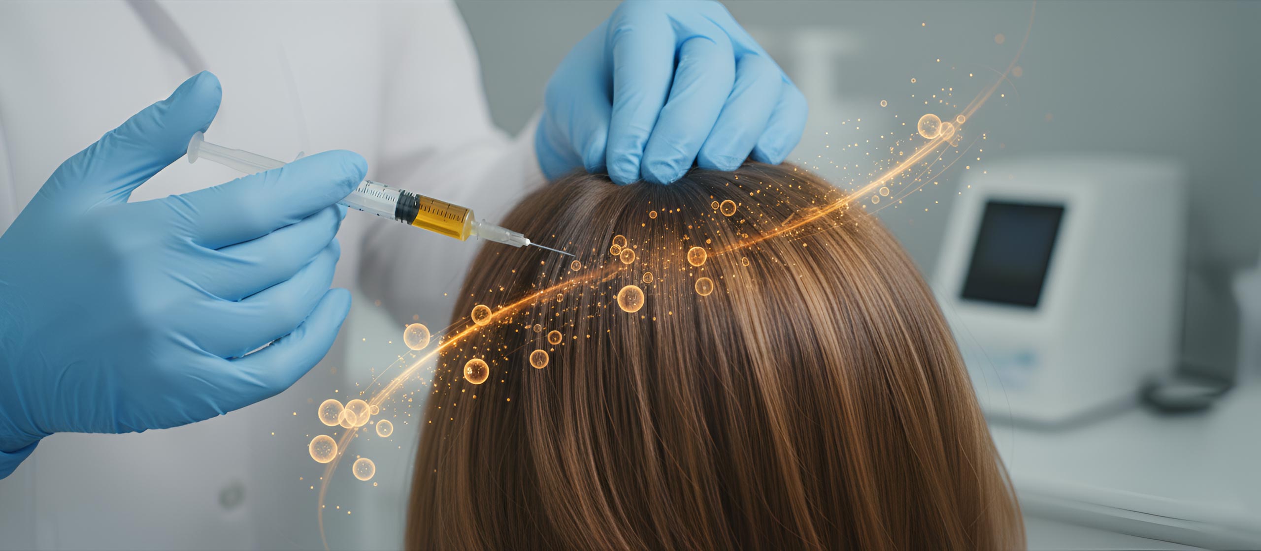 Tratamiento médico mediante microinyecciones de activos específicos en el cuero cabelludo para estimular el crecimiento, mejorar la densidad capilar y reforzar el cabello debilitado en hombres y mujeres.